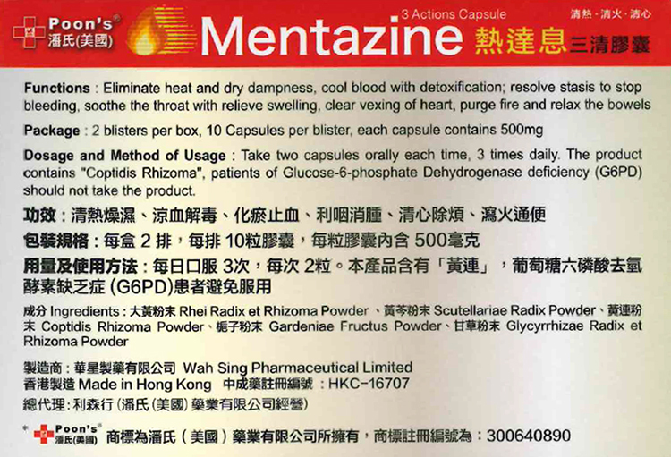 不含類固醇,有助消炎,抗毒,清熱氣。